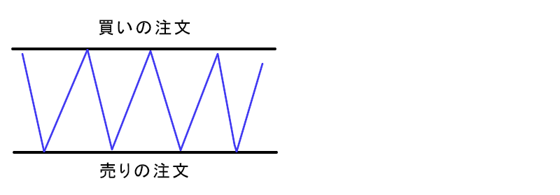 たとえば、下図のように一定の値幅で推移するレンジ相場を想定してみましょう。