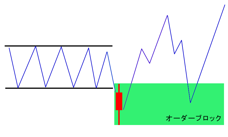 オーダーブロックとは、スマートマネーが大きな値動きを起こす直前に形成される価格帯のことを指します。
