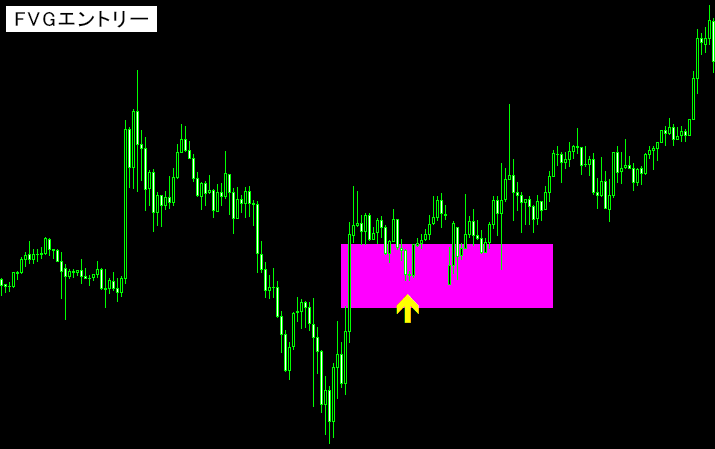 ・価格がFVGに到達すると、トレンド方向へ再び動きやすい(不均衡を生んだ注文が再び作用するため)