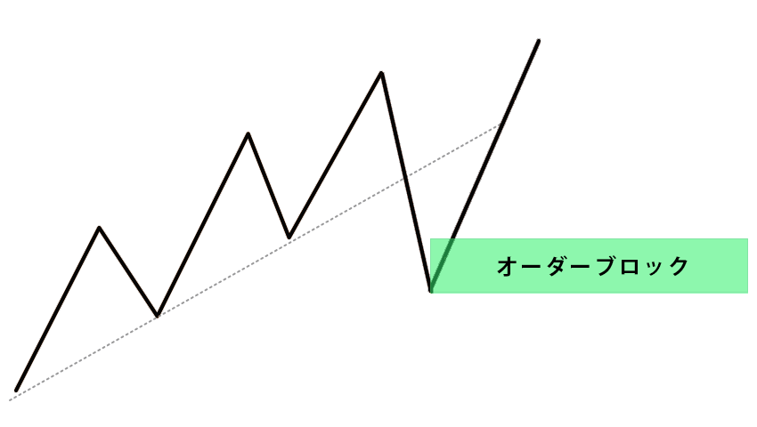 オーダーブロックは、スマートマネーが以前に仕込んだポジション(現在は含み損になっている可能性があるポジション)を整理・決済したいと考える水準でもあります。そのため、価格がその水準に戻ってくると、大きな反転が起こりやすいと解釈されます。