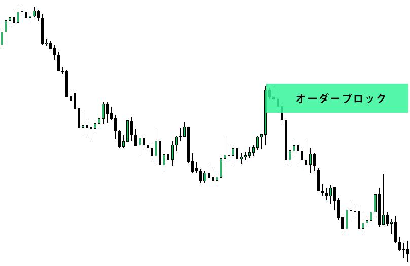 オーダーブロックとは、前述の通り、スマートマネーがポジションを仕込んだと考えられる価格帯を指します。