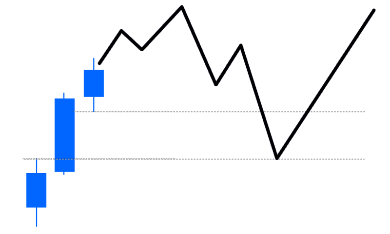 それでは、ここまでの内容を踏まえて、FVGを完全に埋めることなく反転しやすいパターンについて、図を使って解説していきます。