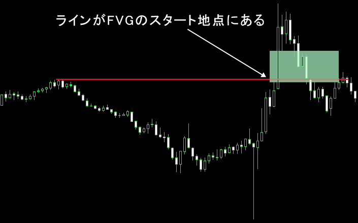 下のチャートは、ラインがFVGの始点に重なっているケースです。