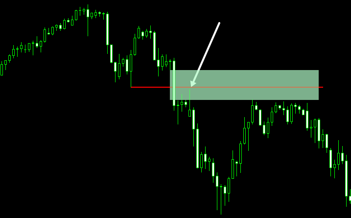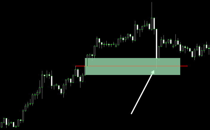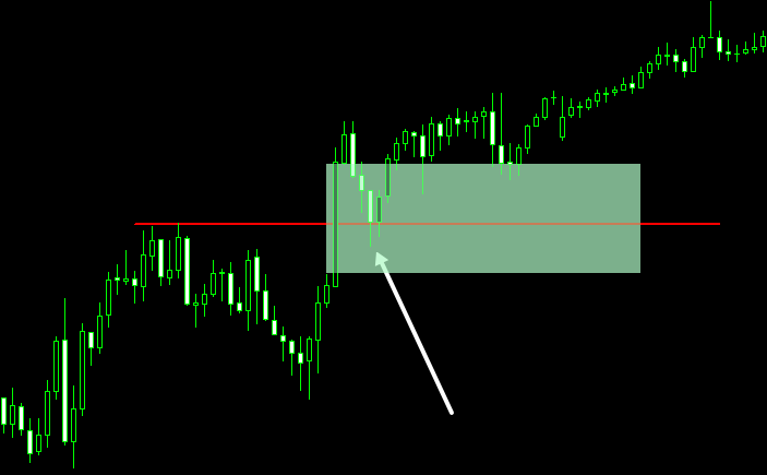 FVGの価格帯では、左右のヒゲが重なっておらず、価格が非常に強い勢いで一方向へ進んだうえ、途中でほとんど押し戻されていません。