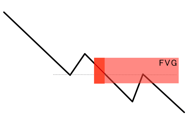 下落局面では、先行する安値が、その後に形成されるFVGの内部に位置していることが条件となります。