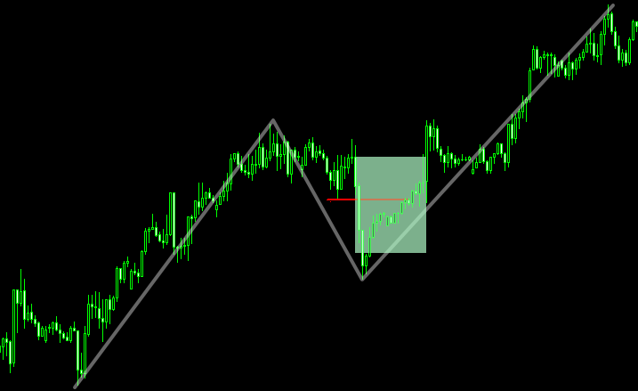FVGの始点と、前の高値を示す赤いラインがほぼ重なっています。